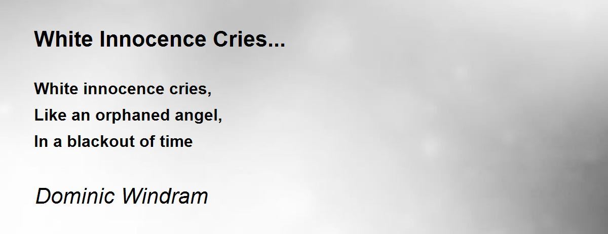 White innocence cries, Like an orphaned angel, In a blackout of time