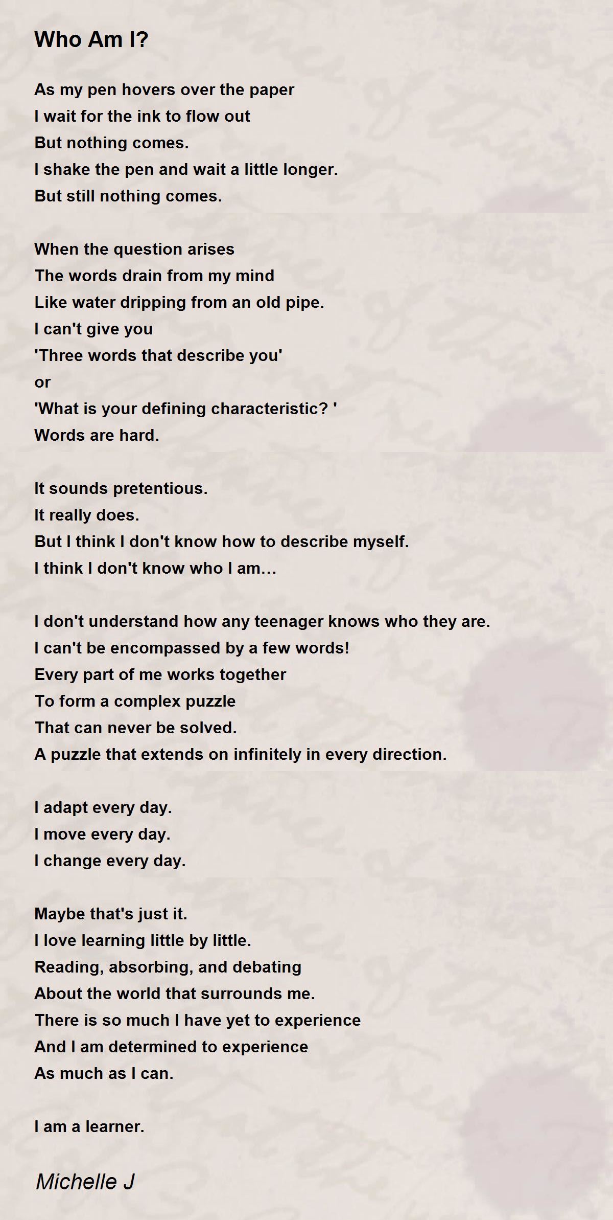 But I think I don't know how to describe myself.
