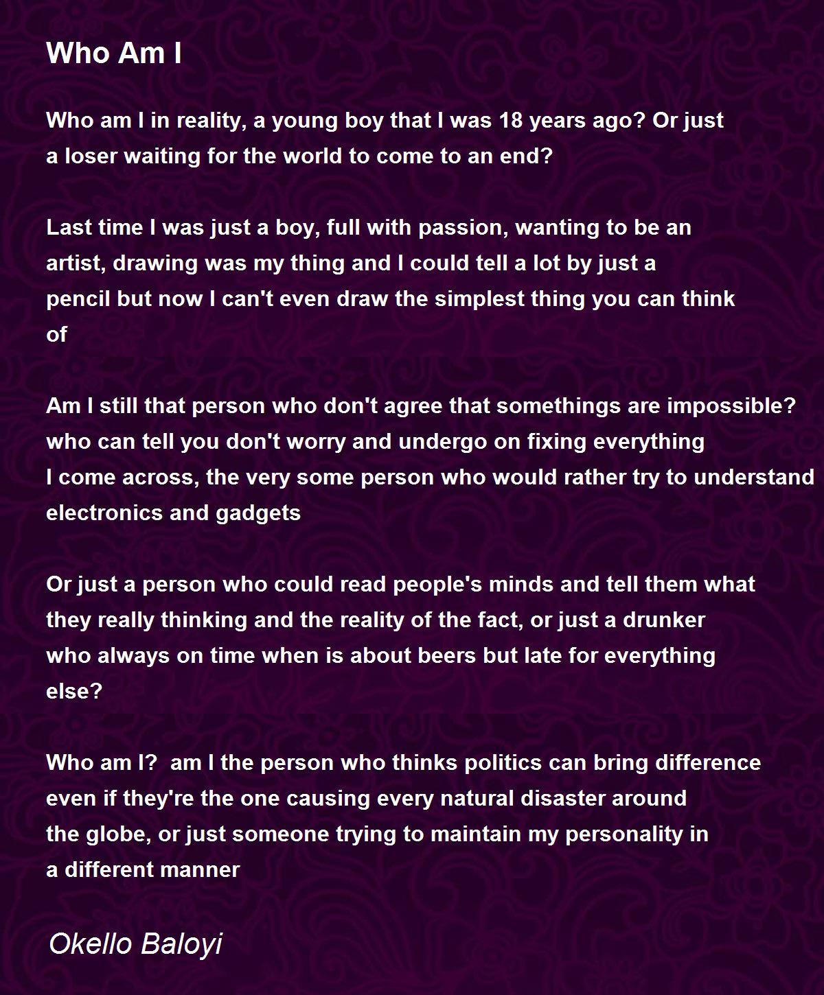 Who am I in reality, a young boy that I was 18 years ago? Or just a loser waiting for the world to come to an end?