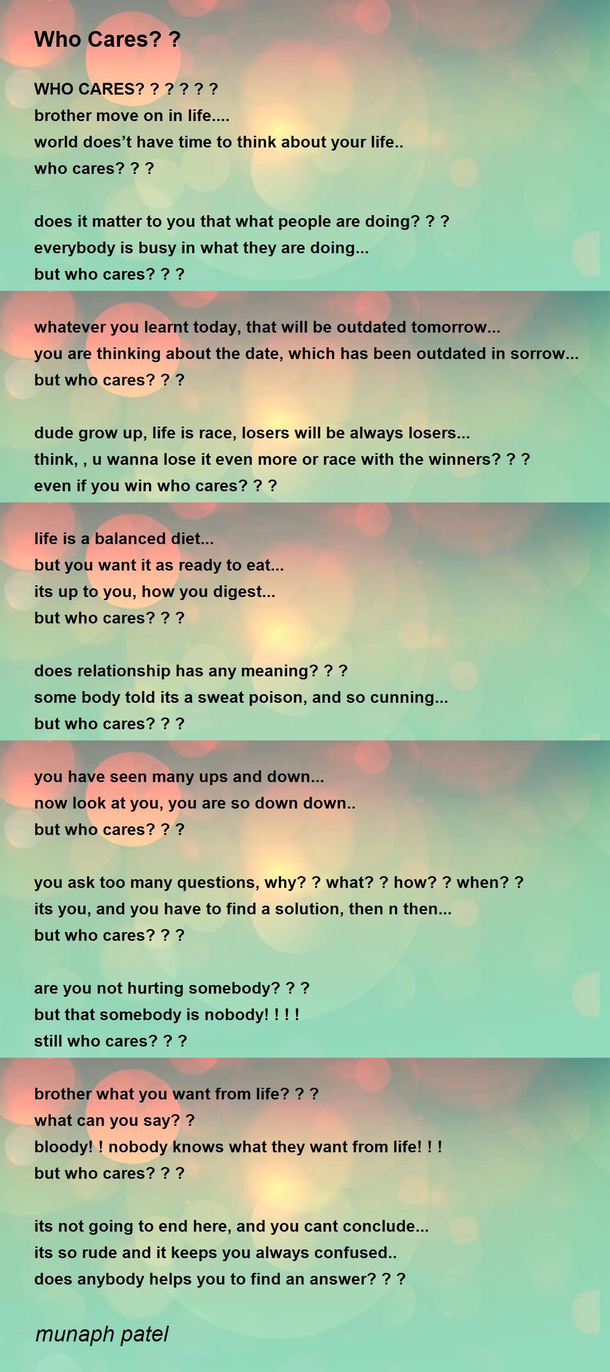 WHO CARES? ? ? ? ? ?