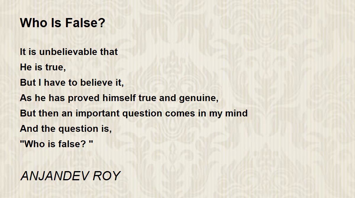 And the question is, " Who is false? " ANJANDEV ROY ALL WHO SAY THEY SAY TRUE BUT TILL WHE AND THEN THEY ARE CAUGHT BY U