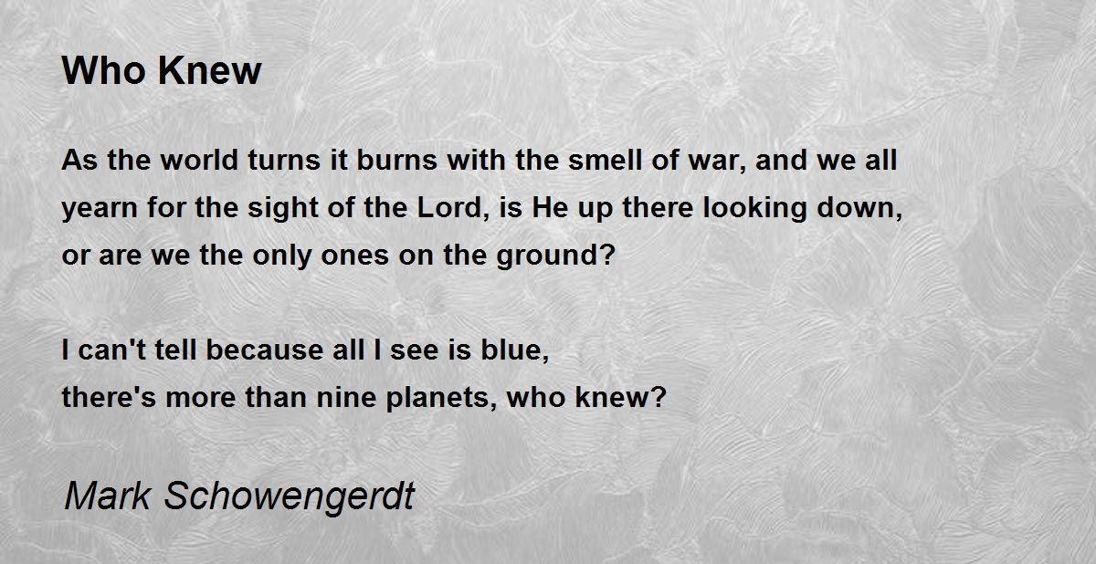 As the world turns it burns with the smell of war, and we all yearn for the sight of the Lord, is He up there looking down, or are we the only ones on the ground?