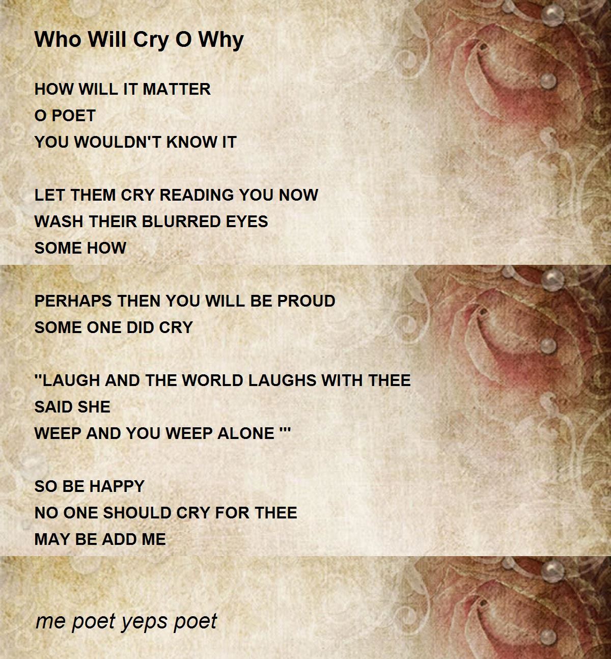 '''LAUGH AND THE WORLD LAUGHS WITH THEE SAID SHE WEEP AND YOU WEEP ALONE '''...I totally agree with this idea....indeed thought provoking poem