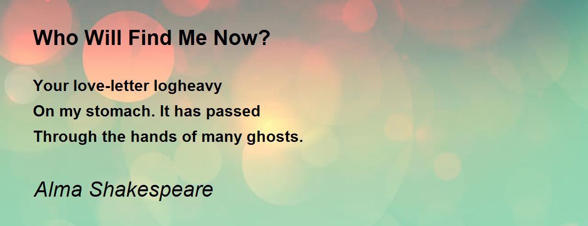 Your love-letter logheavy On my stomach. It has passed Through the hands of many ghosts.