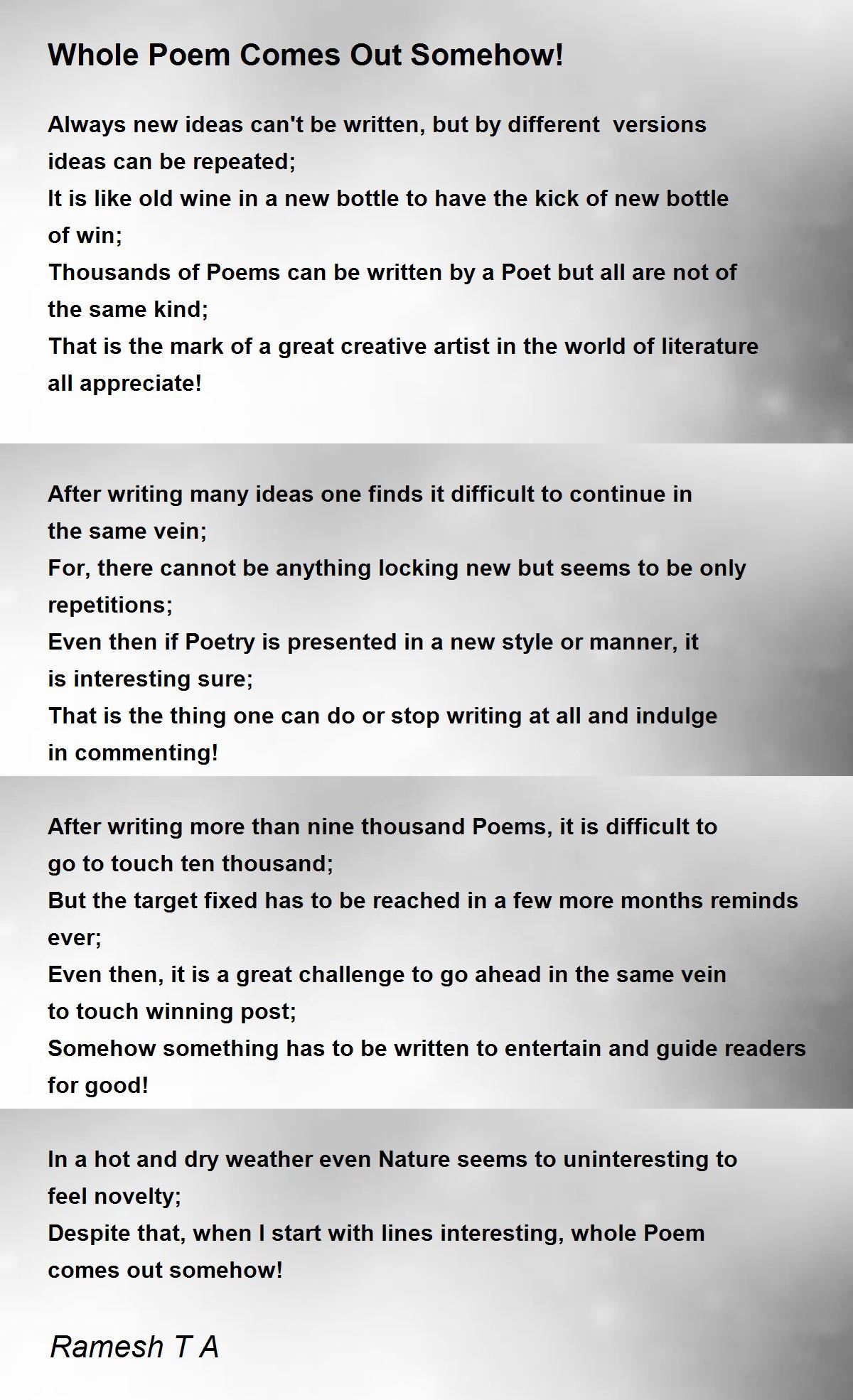 Despite that, when I start with lines interesting, whole Poem comes out somehow!