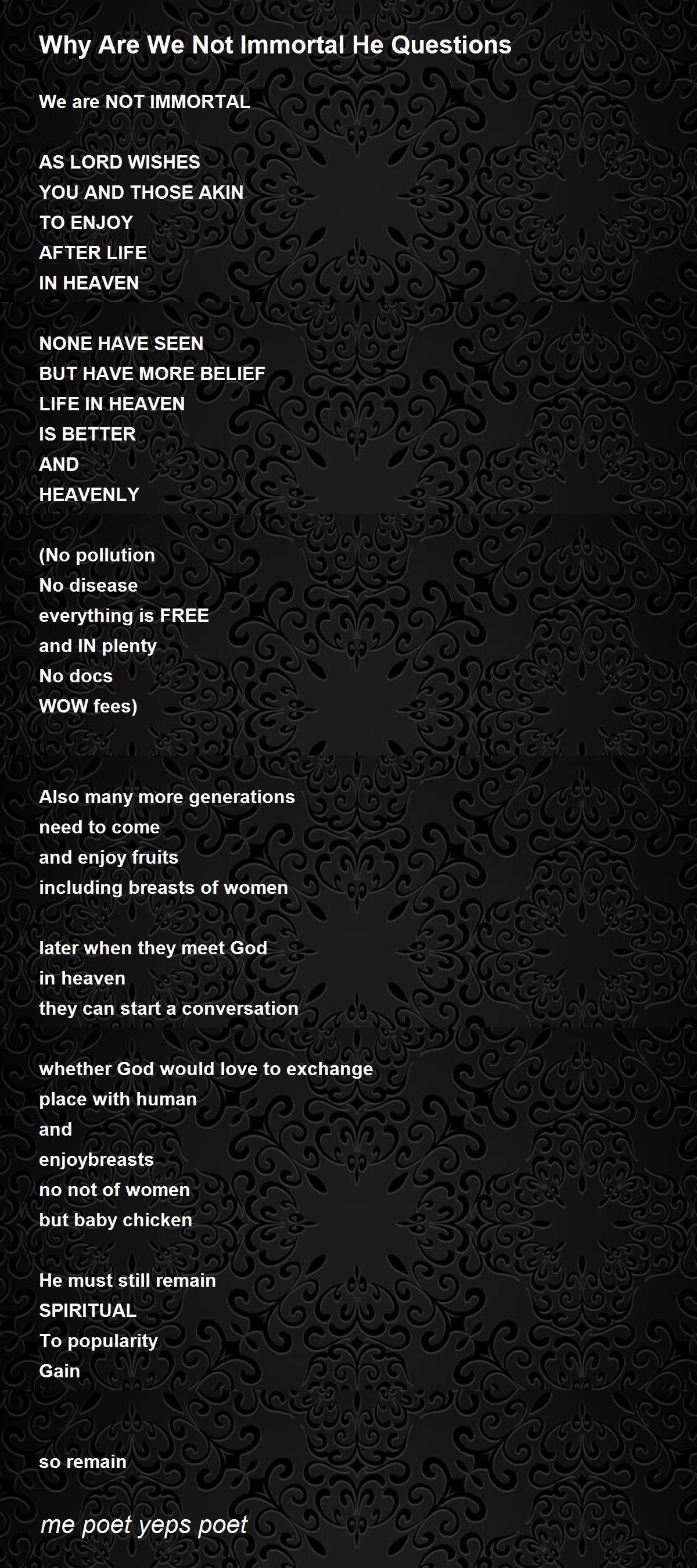 We are not immortal and thank good heaves, as some wit said. You could have been that wit, dear poet.