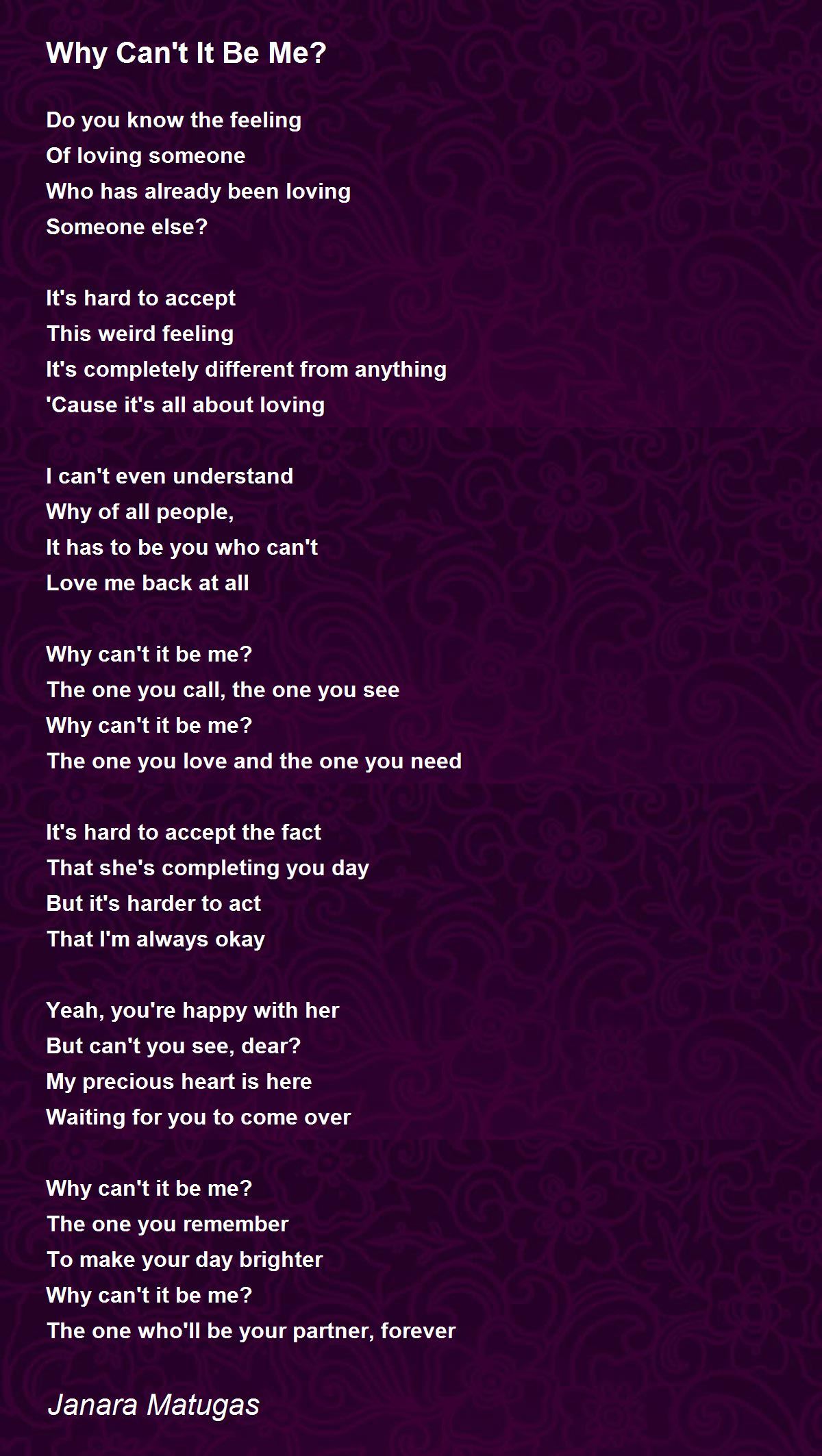 Why can't it be me?