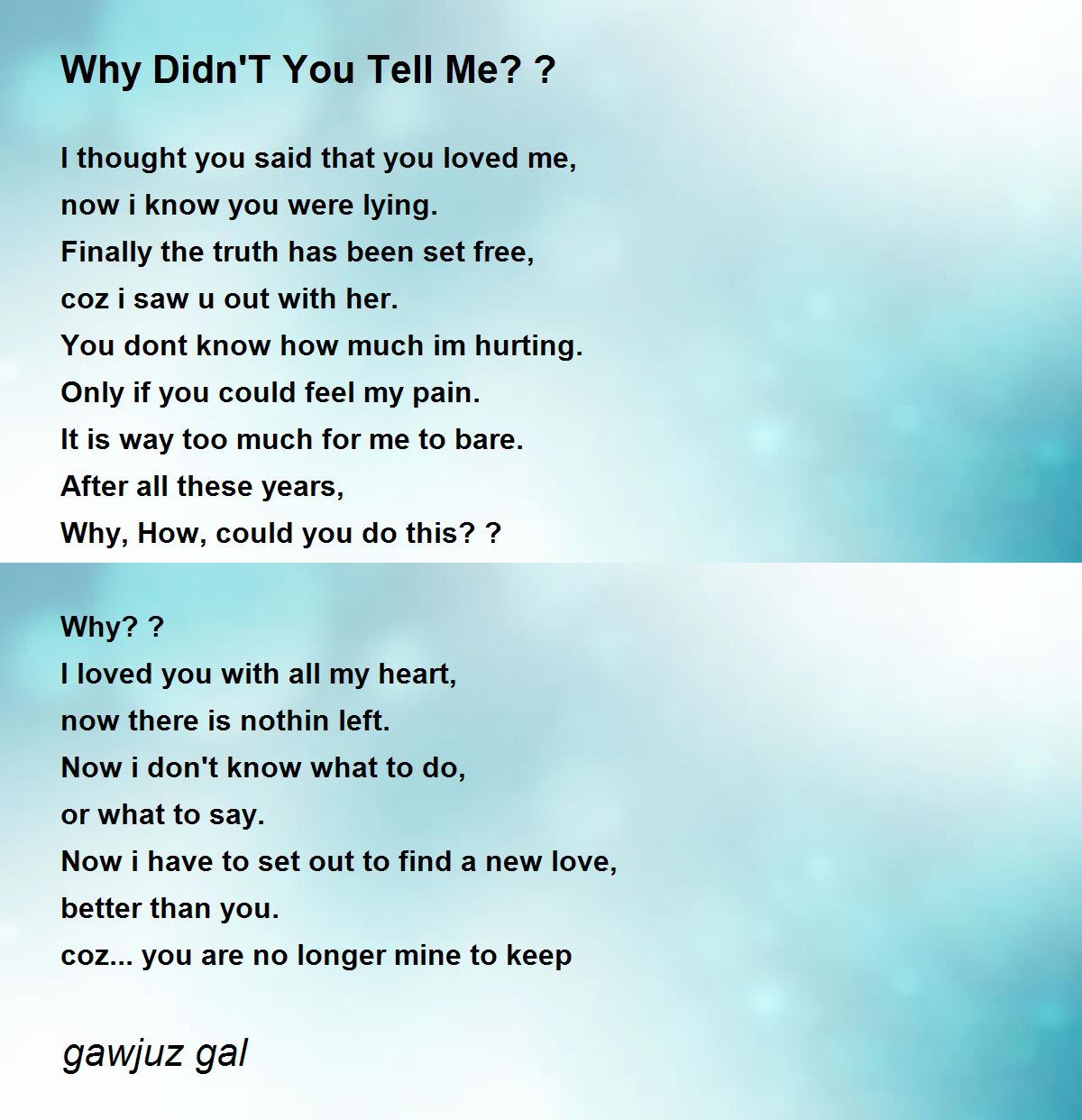 Why, How, could you do this? ?