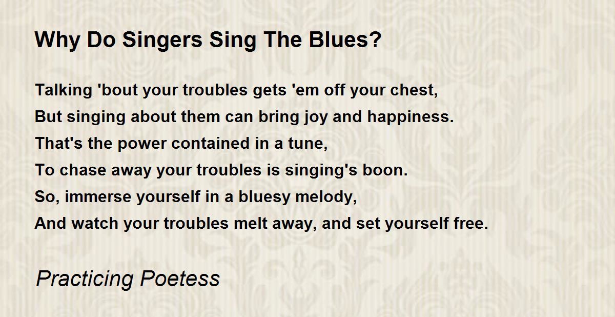 Singing about blues brings joy and happiness, very true and slowly we forget them