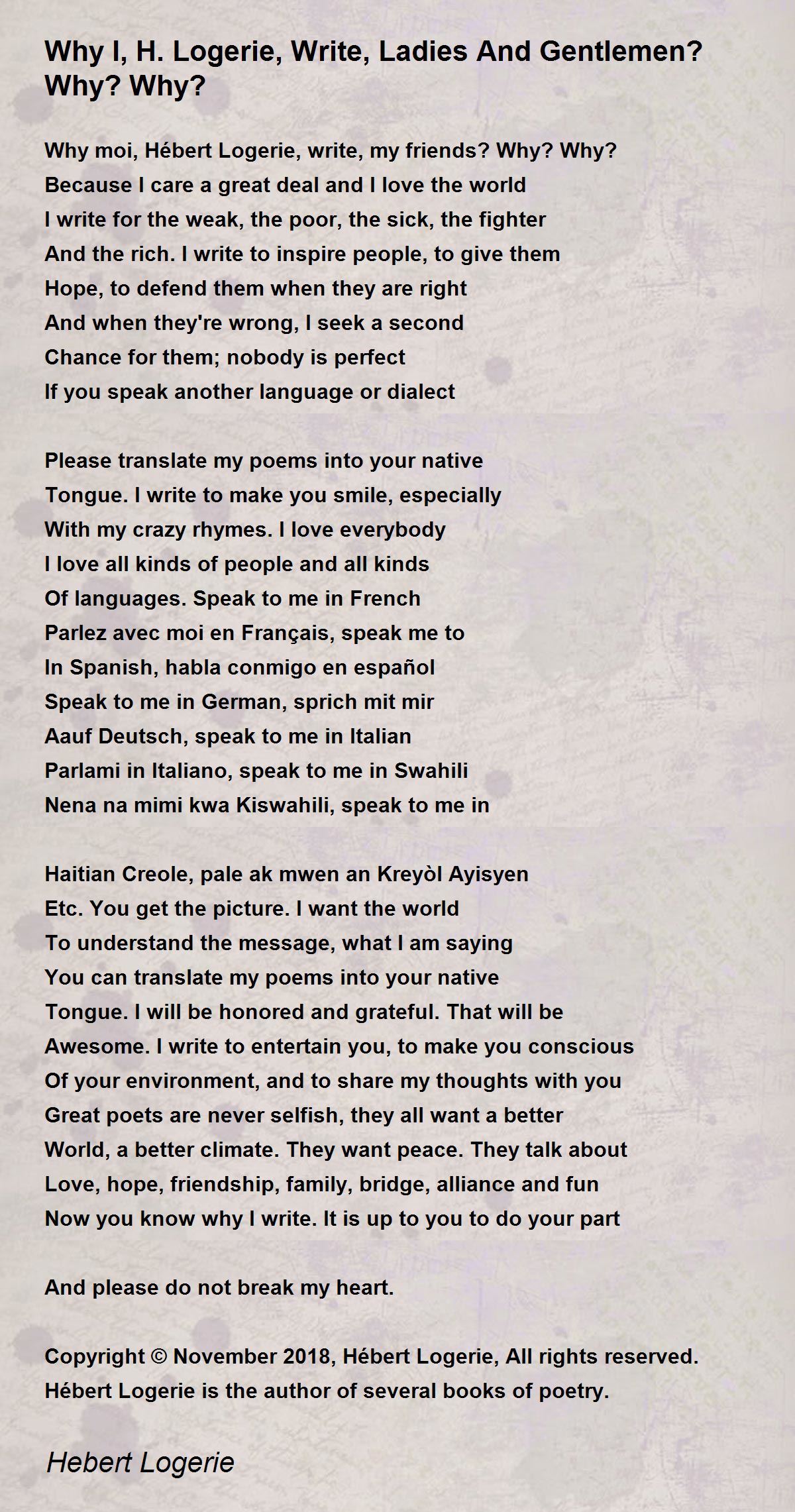 Why moi, Hébert Logerie, write, my friends? Why? Why?