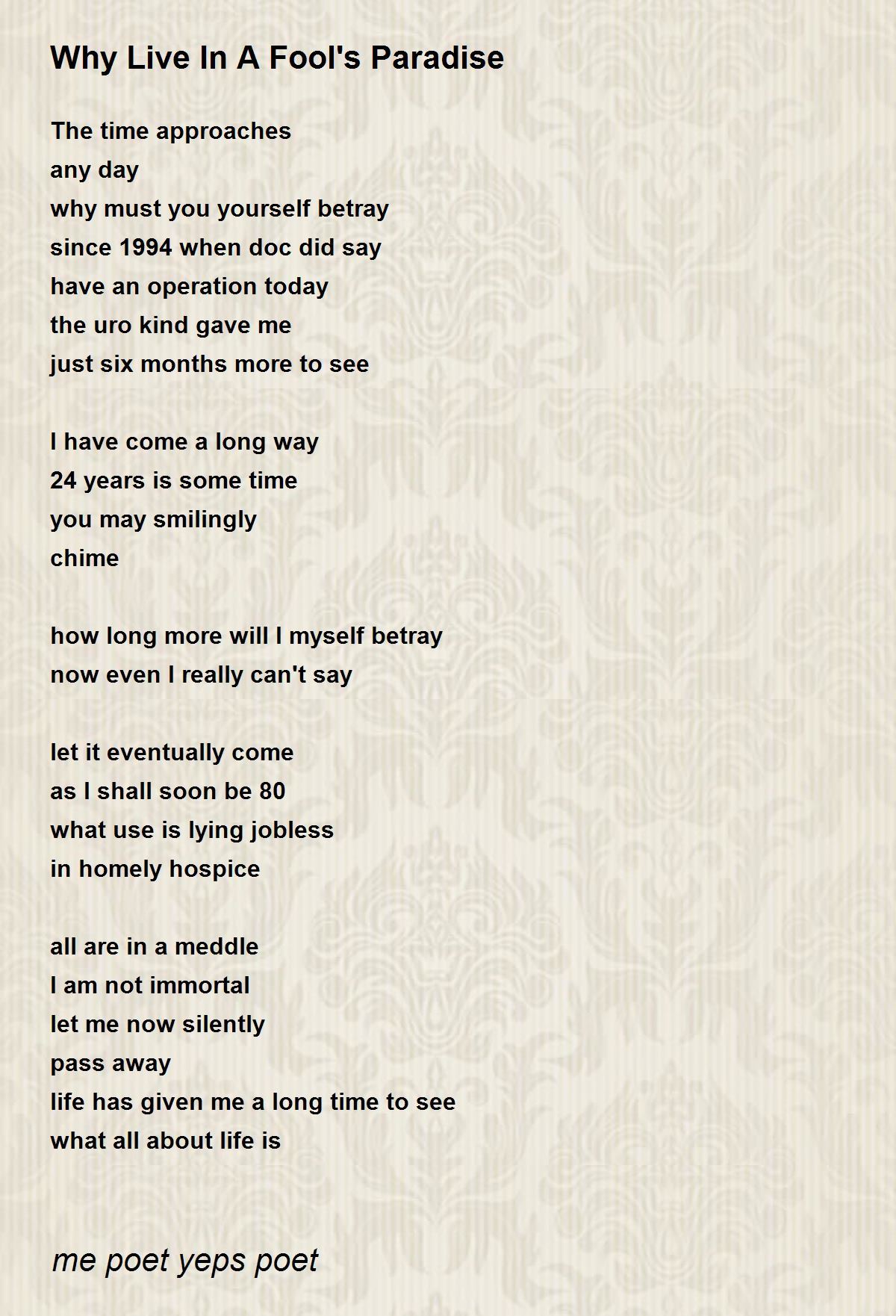 I am very happy for you that the uro is not correct. GOD has given you more years and you have spent most years in poetry, that IS excellent, dear Sir. Are you born in Down Under and reside now in Canada? I have enjoyed the words you wrote in this poem. Please, thank the Lord (God) that He has given you long years to stay on this dry earth. Though I am younger, but advises I have given to you, are serious ones and I do mean that.