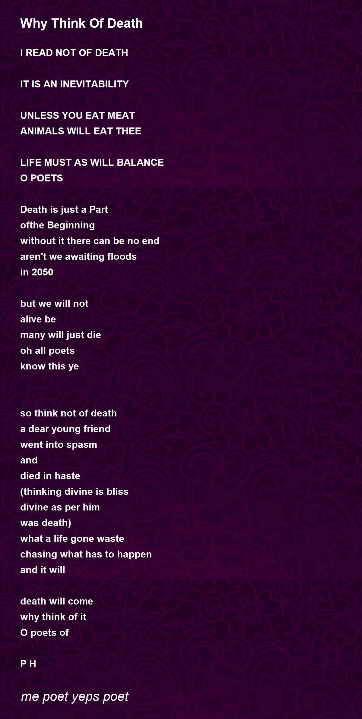 so think not of death......significant. Thanks for sharing. anjandev roy.