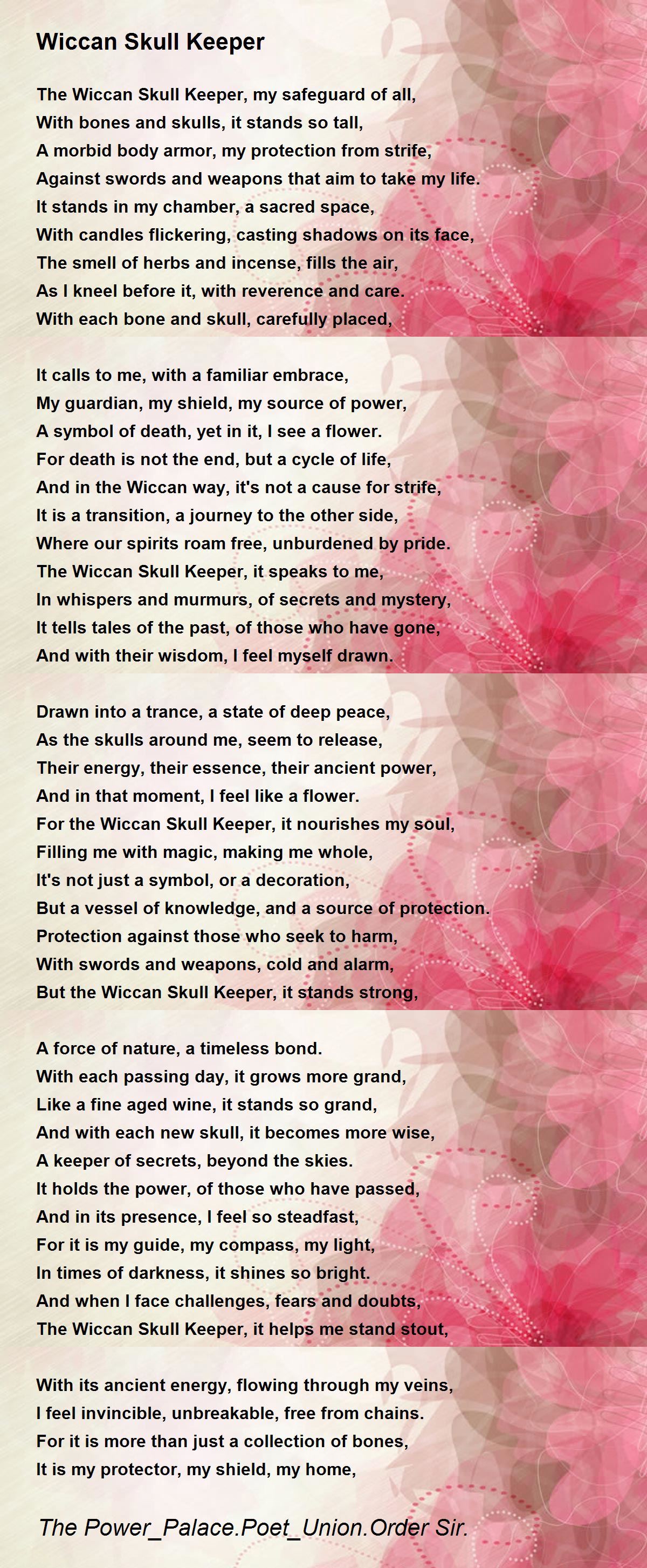 The Wiccan Skull Keeper, my guardian divine,
