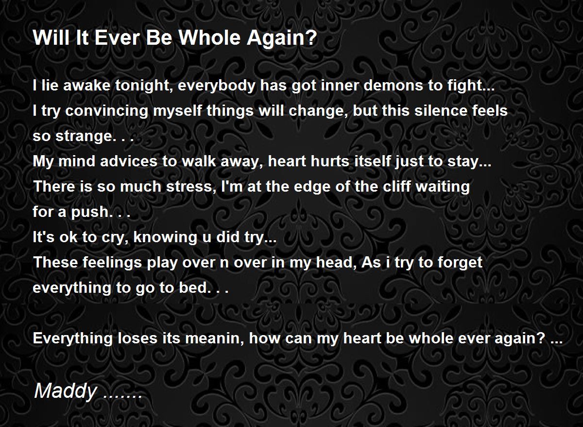 Everything loses its meanin, how can my heart be whole ever again? ...