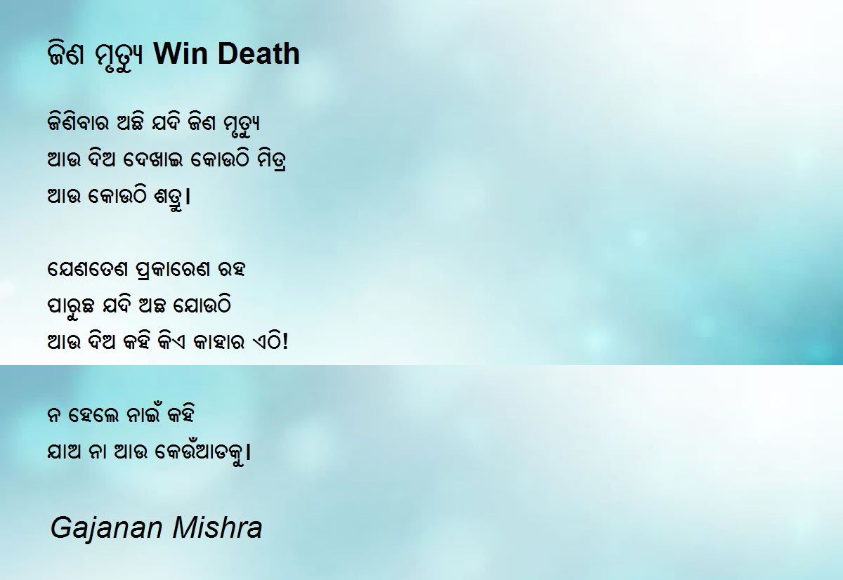 ଜିଣିବାର ଅଛି ଯଦି ଜିଣ ମୃତ୍ୟୁ
