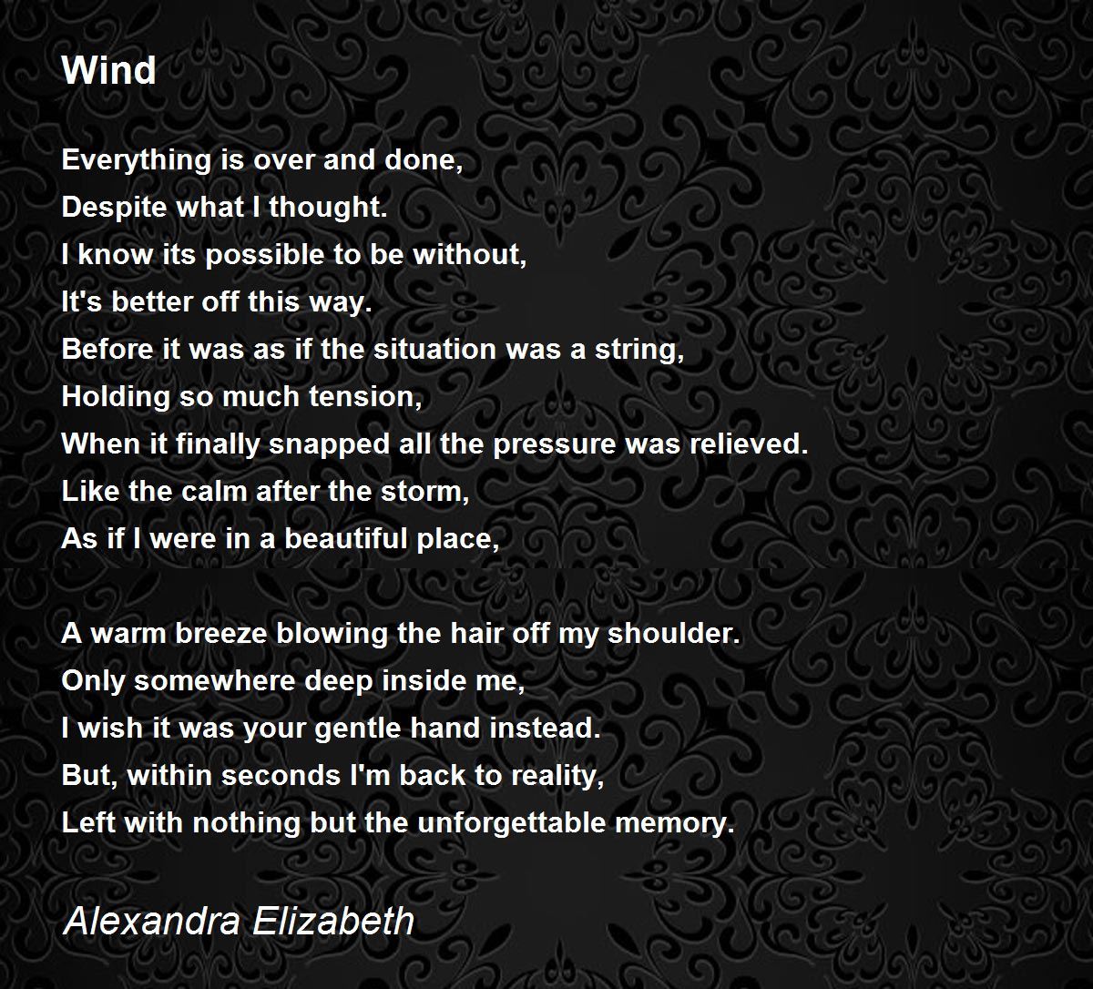 Only somewhere deep inside me, I wish it was your gentle hand instead. wishes are so true in our lives. reality is another. may all ur wishes come true. thank you.