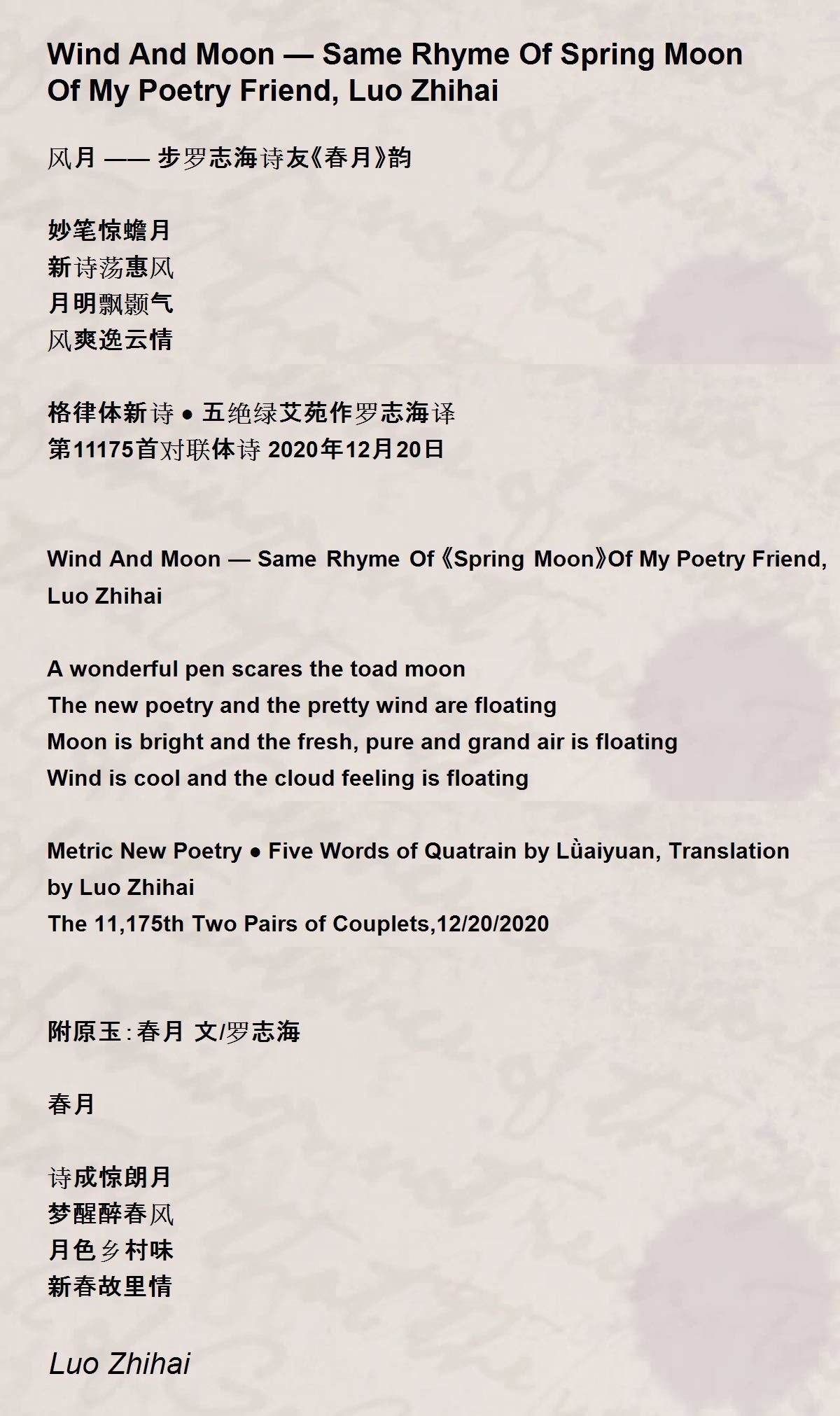 Wind And Moon — Same Rhyme Of 《Spring Moon》Of My Poetry Friend, Luo Zhihai