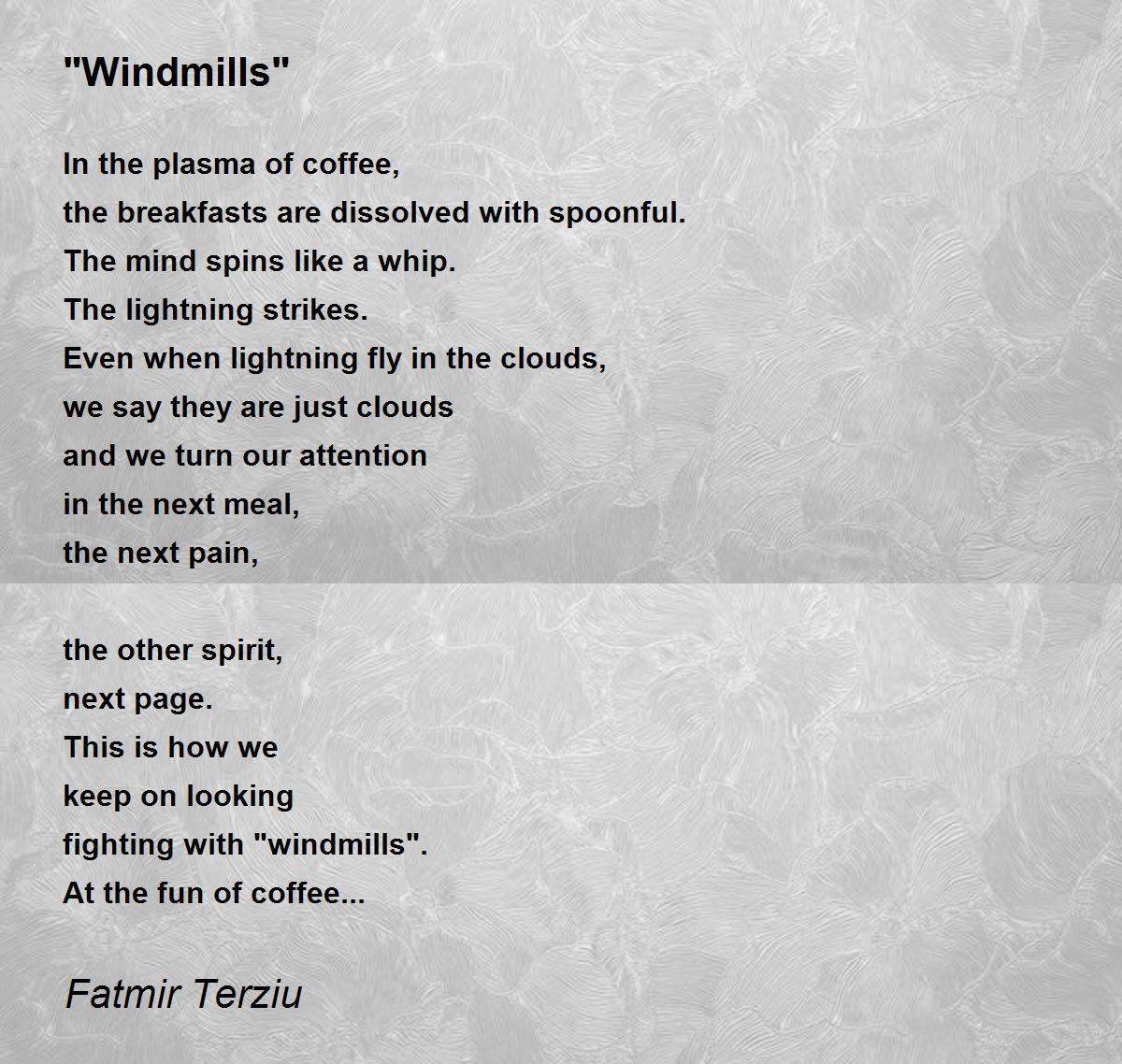 Like floating clouds we turn our mind. This is really very amazing. Keep on looking fighting with windmills, at the fun of coffee. An amazing experience you will gain to express. This poem is brilliantly penned...10