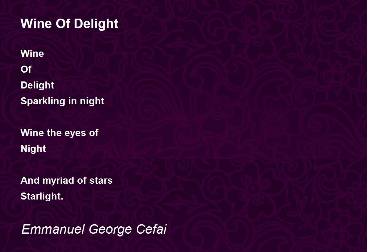 Wine Of Delight Sparkling in night Wine the eyes of Night And myriad of stars Starlight.