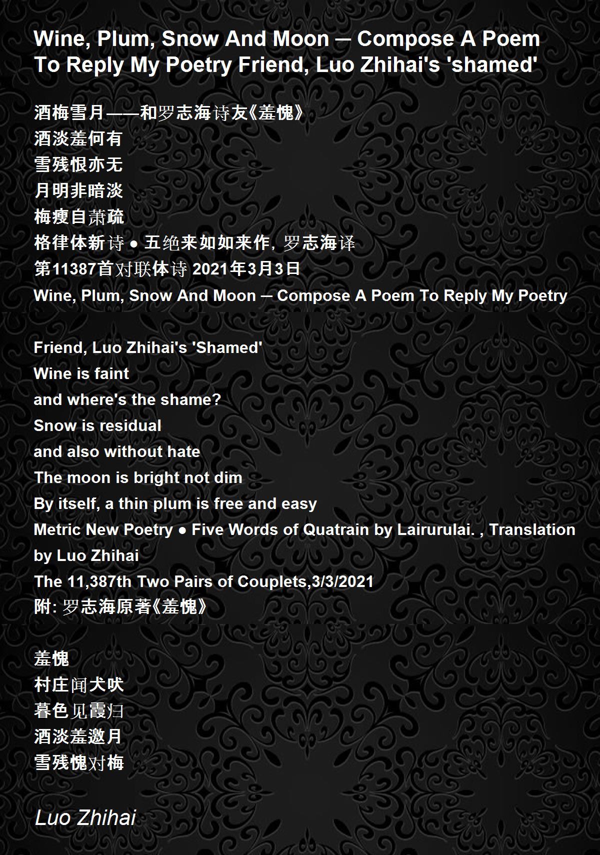 Wine, Plum, Snow And Moon ─ Compose A Poem To Reply My Poetry Friend, Luo Zhihai's 'Shamed'