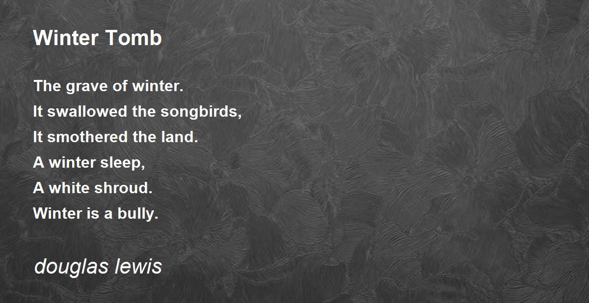The grave of winter. It swallowed the songbirds, It smothered the land. A winter sleep, A white shroud. Winter is a bully.