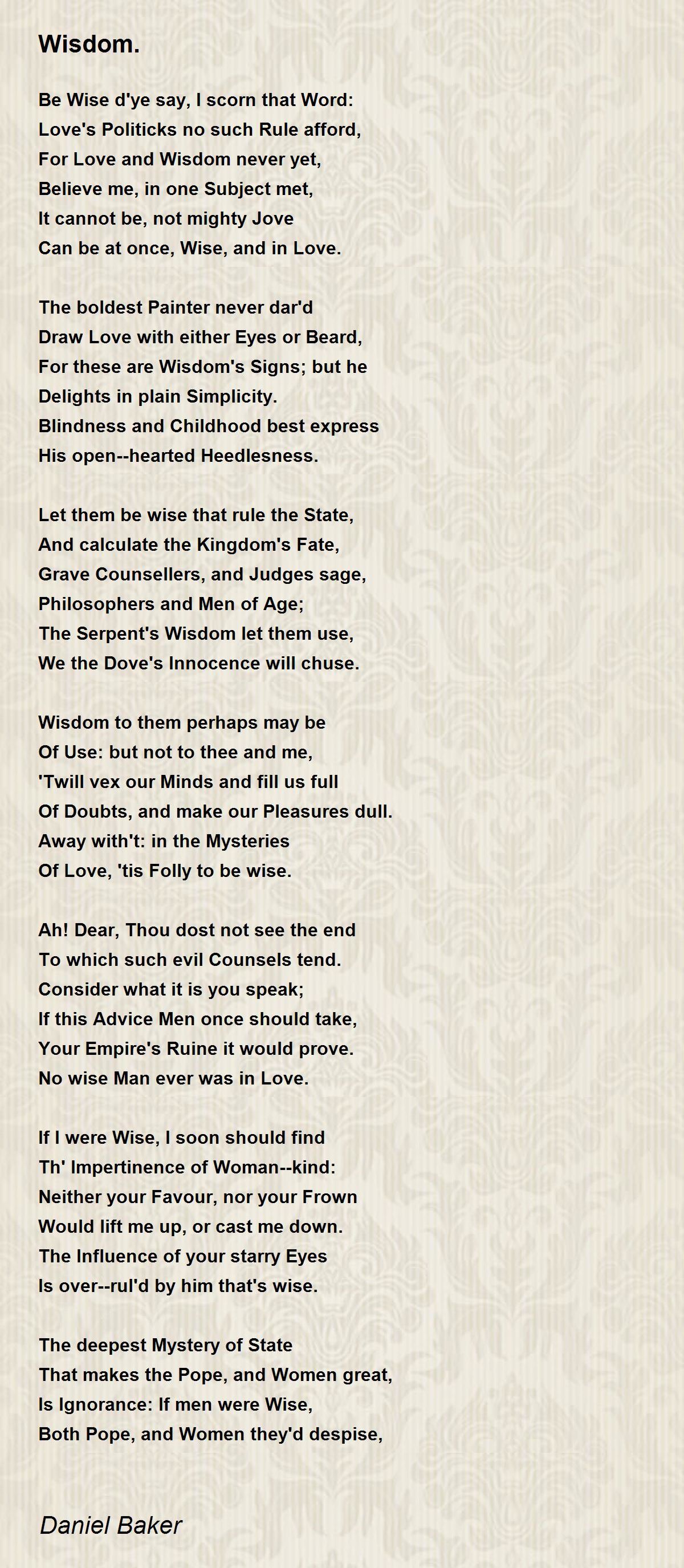 Be Wise d'ye say, I scorn that Word: