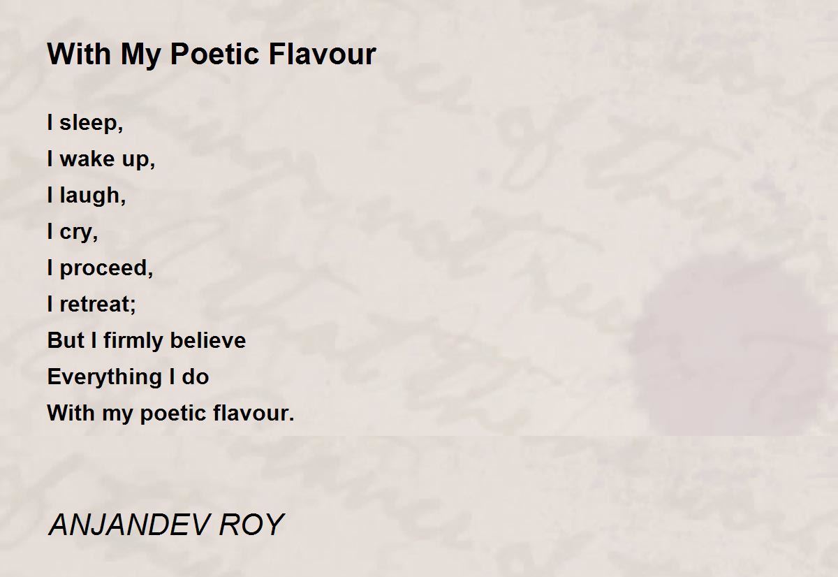 I sleep, I wake up, I laugh, I cry, I proceed, I retreat; But I firmly believeEverything I doWith my poetic flavour.