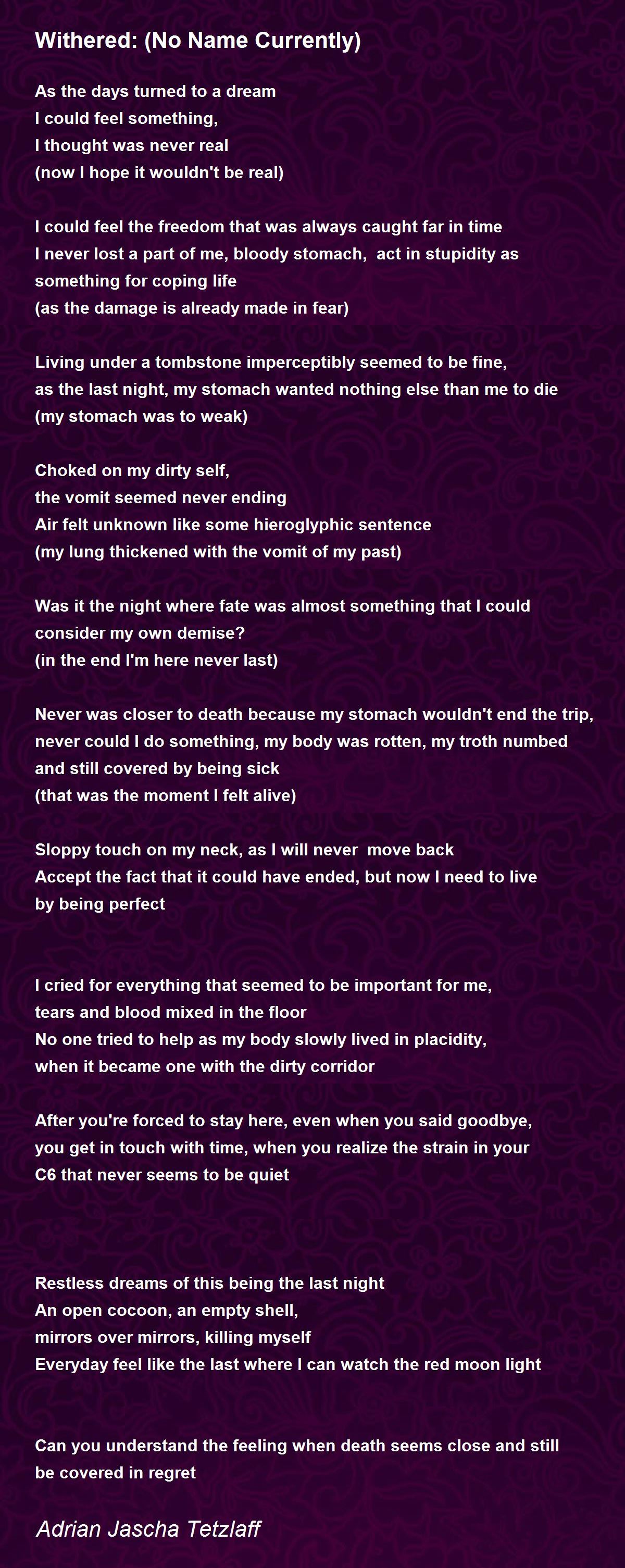 This poem is a box filled with feelings of misery, pain, abandonment, lack of sense, medical nihilism and numbness and it hurts to read this. Intensely captured,5 stars