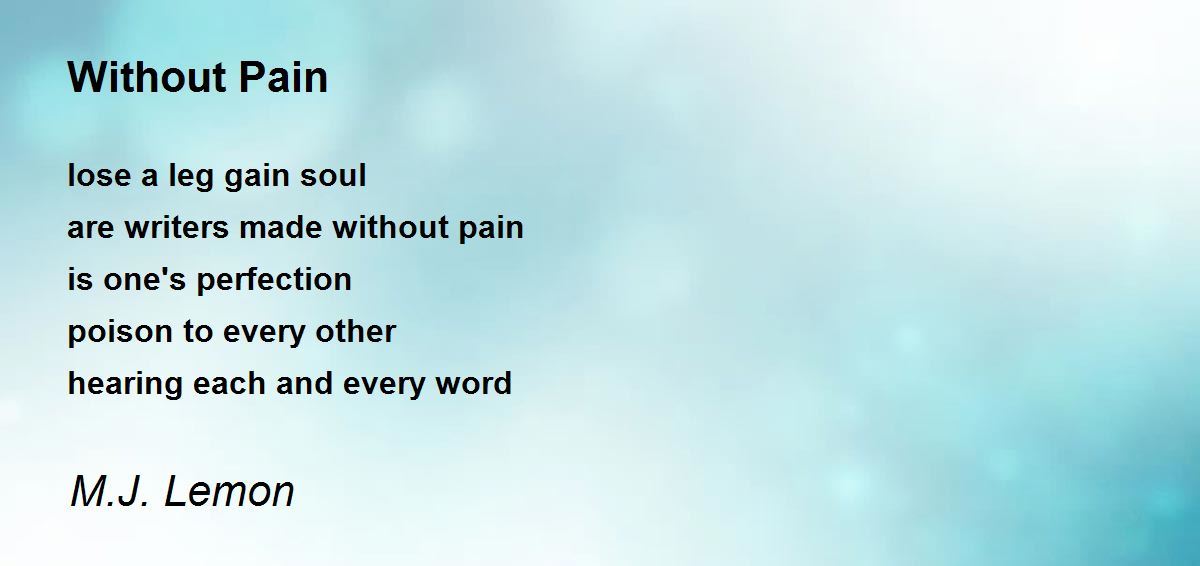 If a writer has no pain then what can they write that has meaning. Only five lines and yet again filled with depth Immanuel Kant could not touch. You can't give five stars to great writing