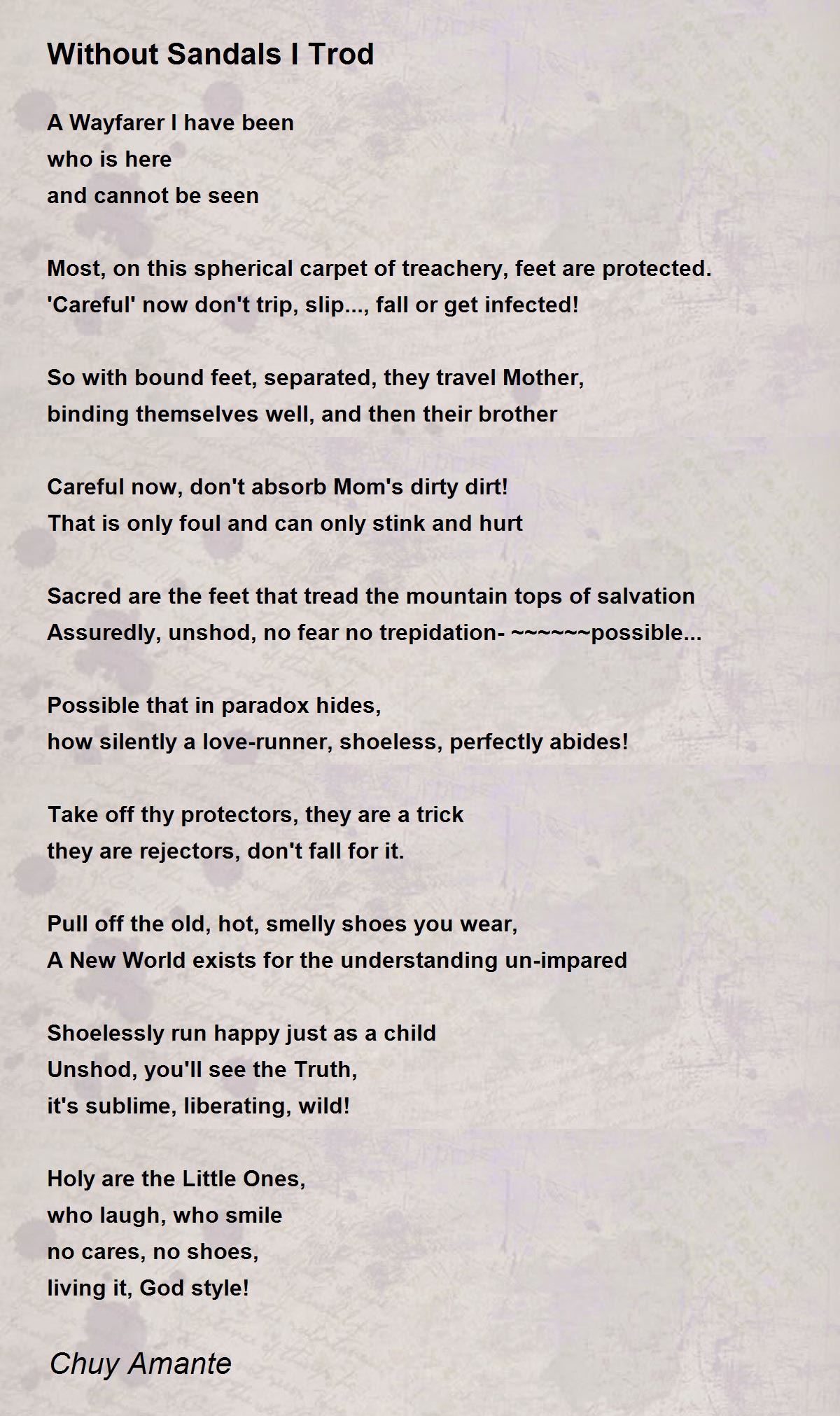 how silently a love-runner, shoeless, perfectly abides!