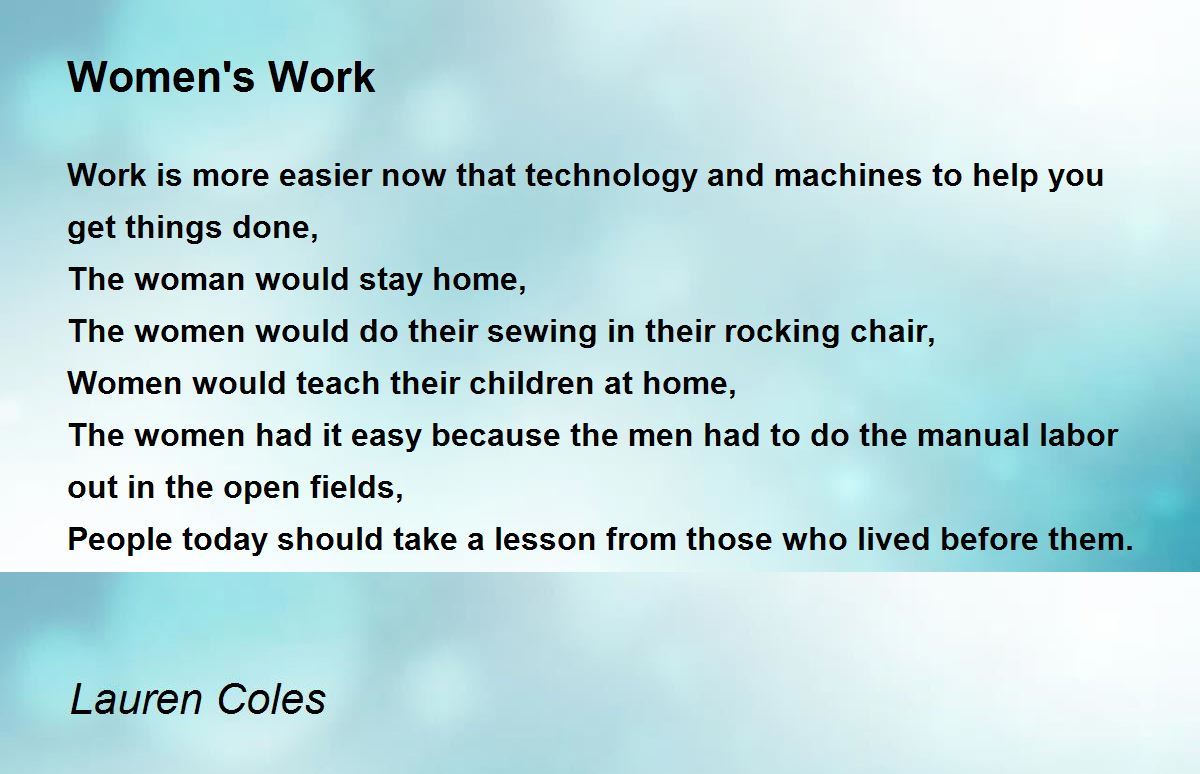 The women had it easy because the men had to do the manual labor out in the open fields,