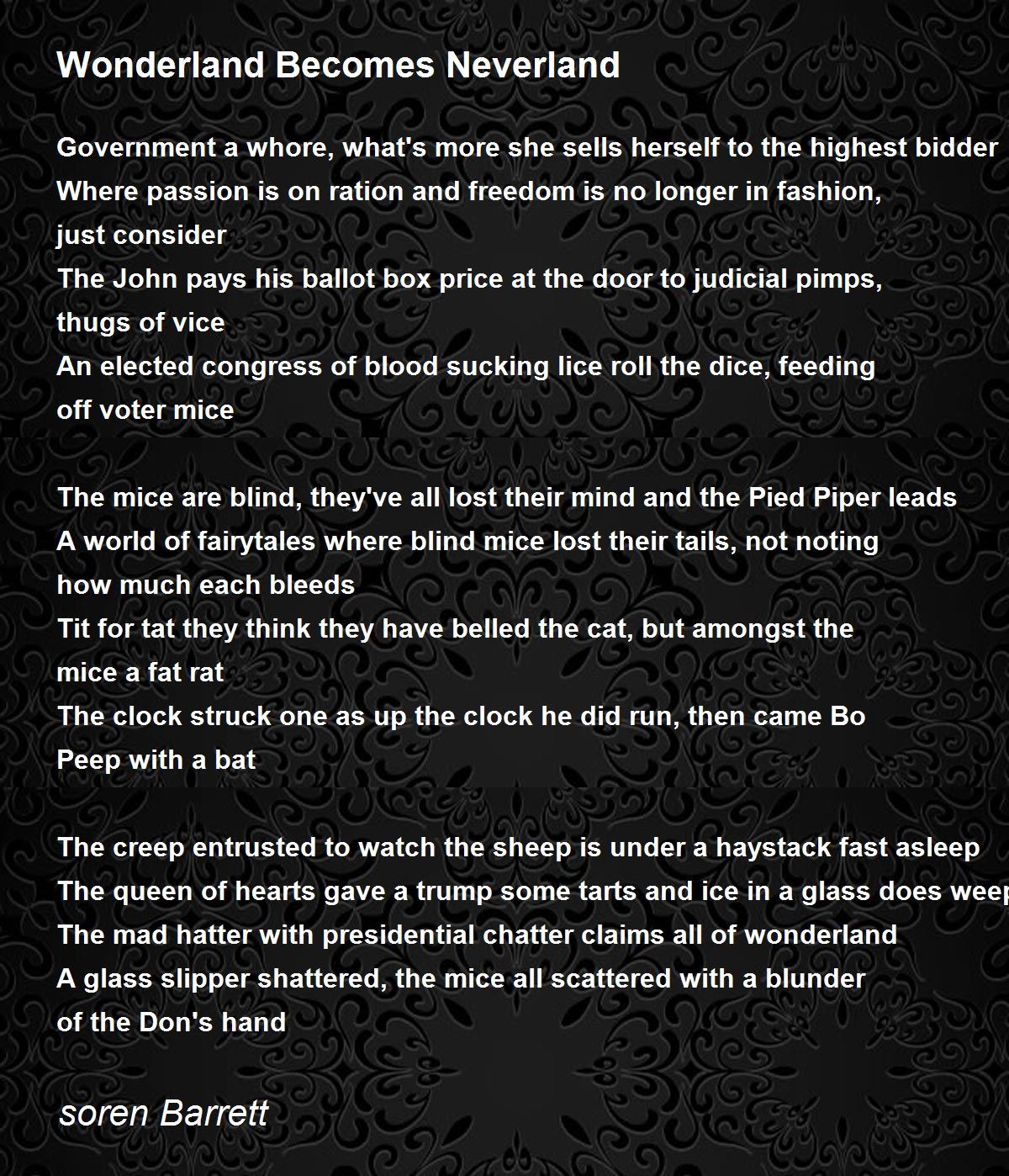 A world of fairytales where blind mice lost their tails, not noting how much each bleeds