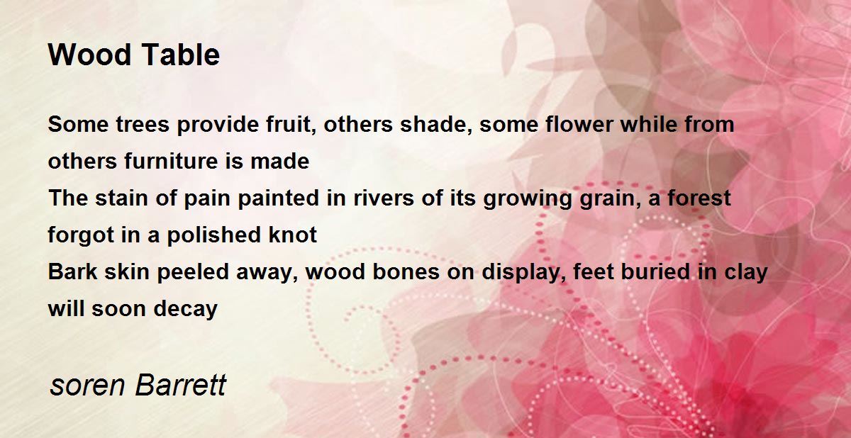 The stain of pain painted in rivers of its growing grain, a forest forgot in a polished knot