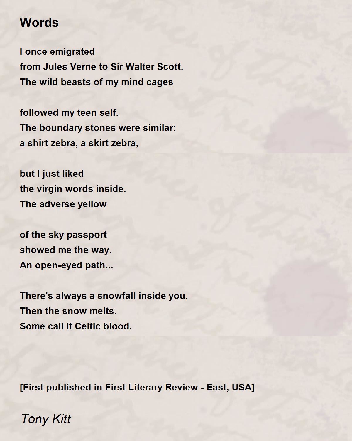 [First published in First Literary Review - East, USA]