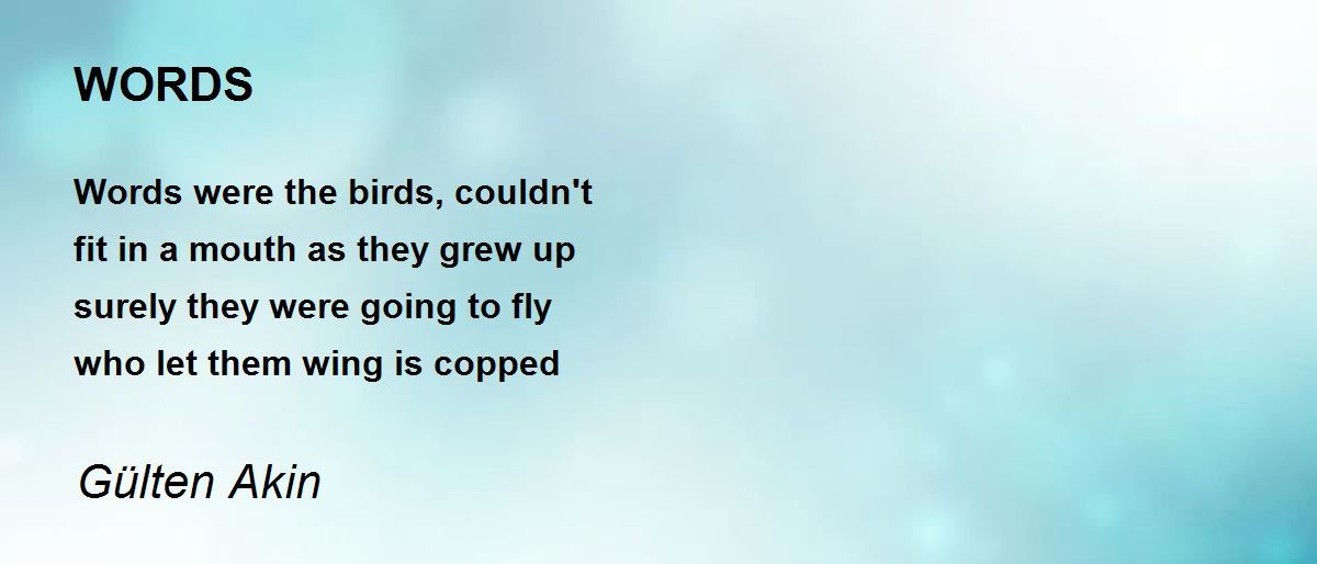 Words were the birds, couldn't fit in a mouth as they grew up surely they were going to fly who let them wing is copped