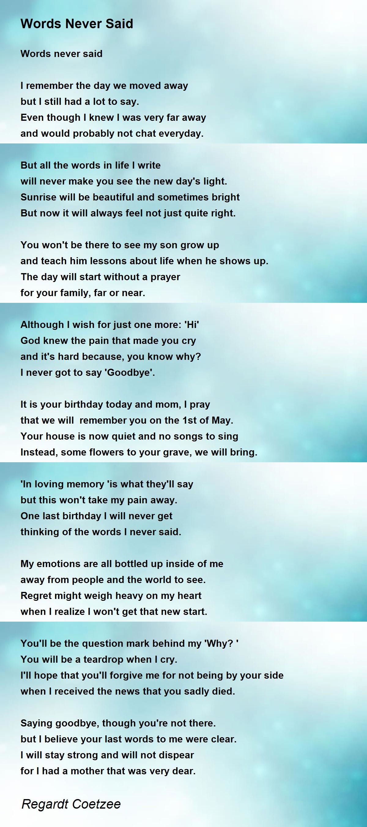 thinking of the words I never said.