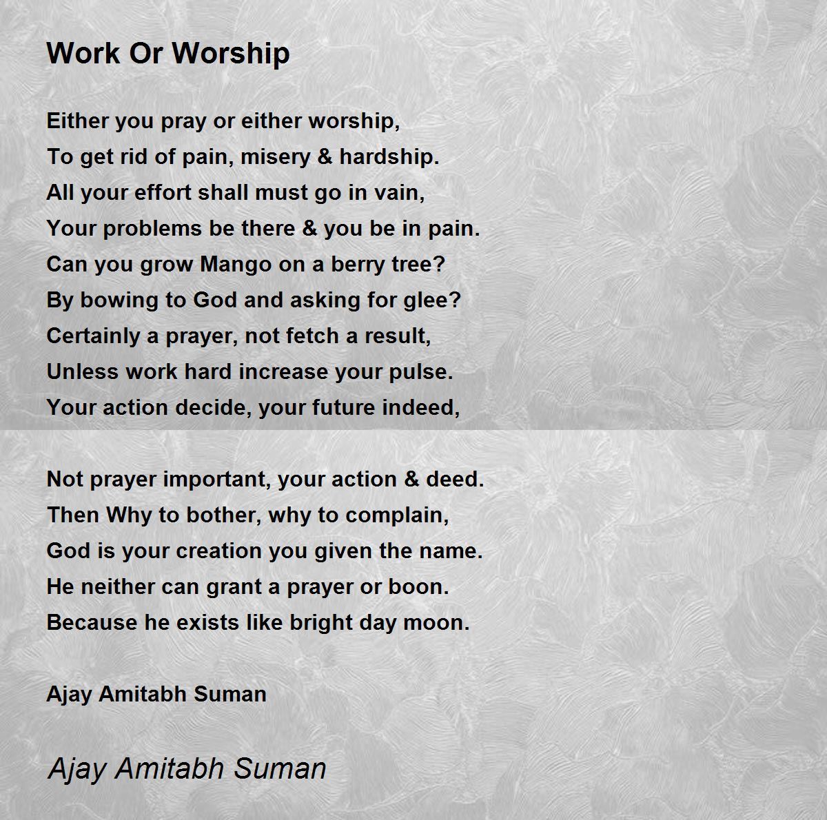 More than praying to God work is better as work is real worship of God!