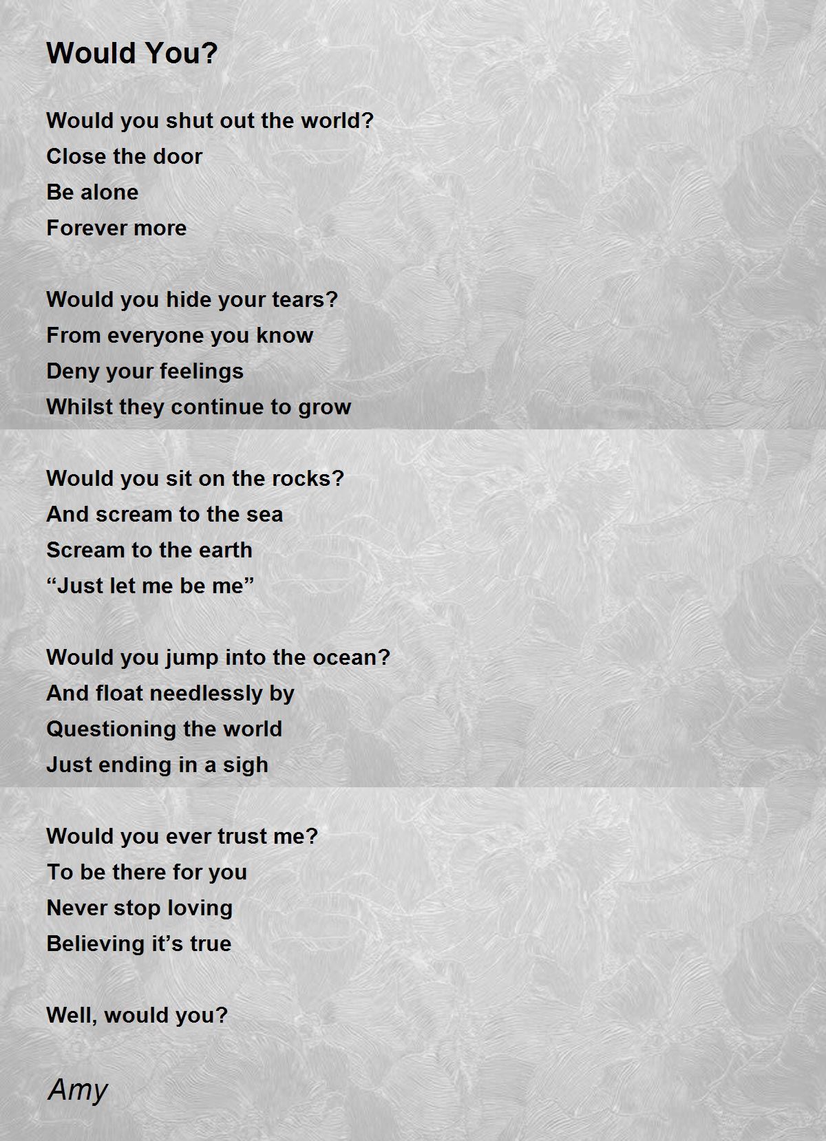 questions demanding answers on love... and all of them nice...good impressive write, Amy...yours this piece robs the reader mind...10