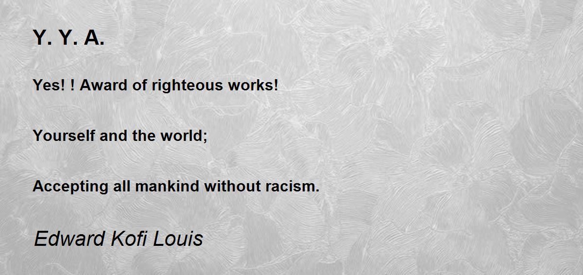 Yes! ! Award of righteous works! Yourself and the world; Accepting all mankind without racism.