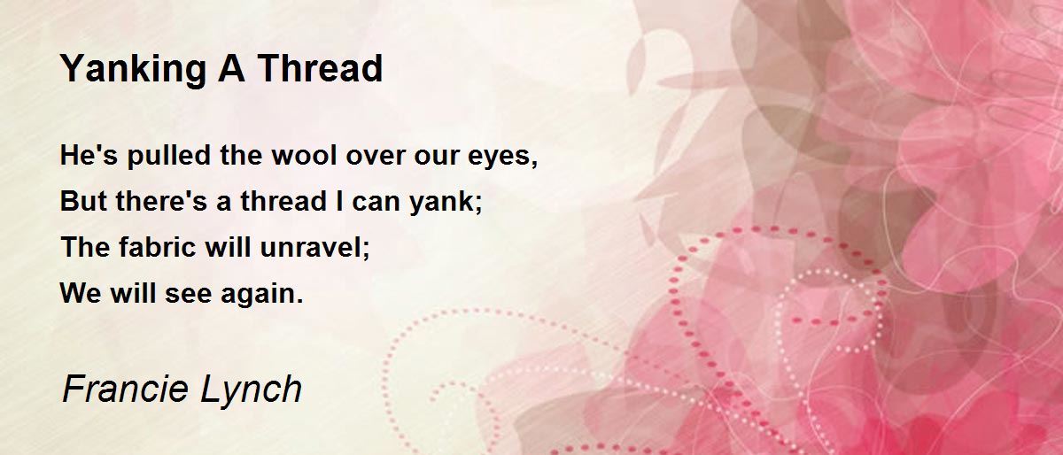 He's pulled the wool over our eyes, But there's a thread I can yank; The fabric will unravel; We will see again.
