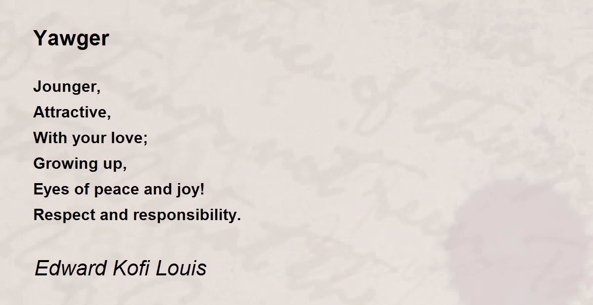 Jounger, Attractive, With your love; Growing up, Eyes of peace and joy! Respect and responsibility.