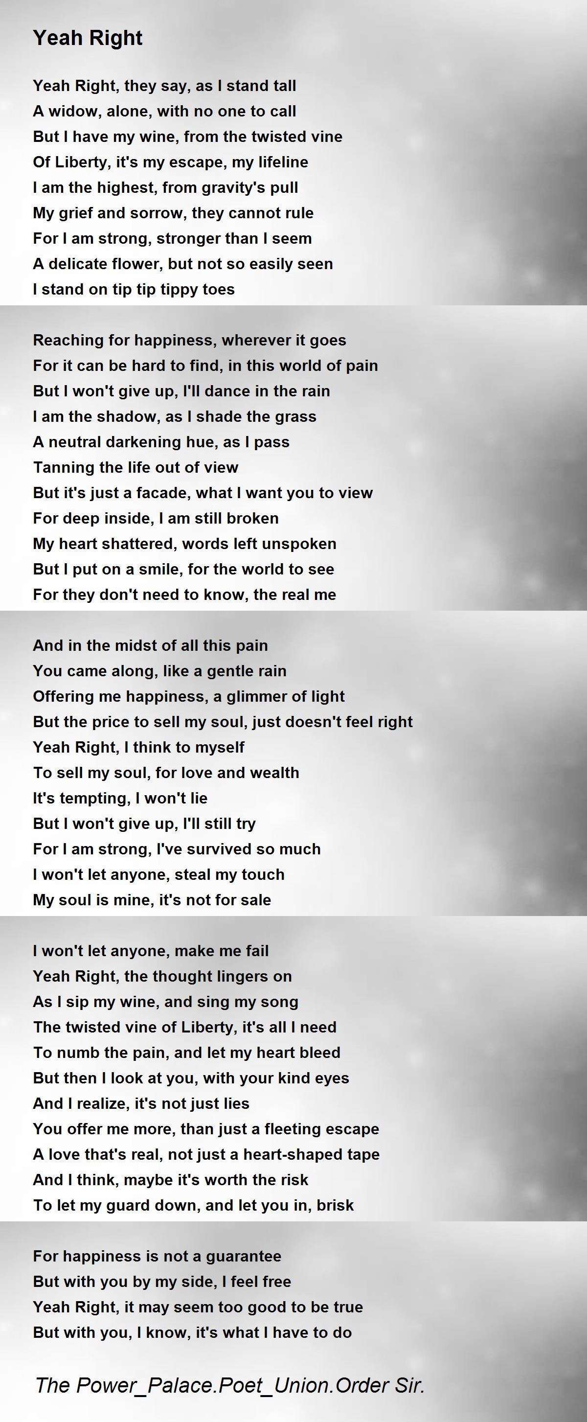 Yeah Right, sounds nice, but with you, I'll gladly say 'Amen'.