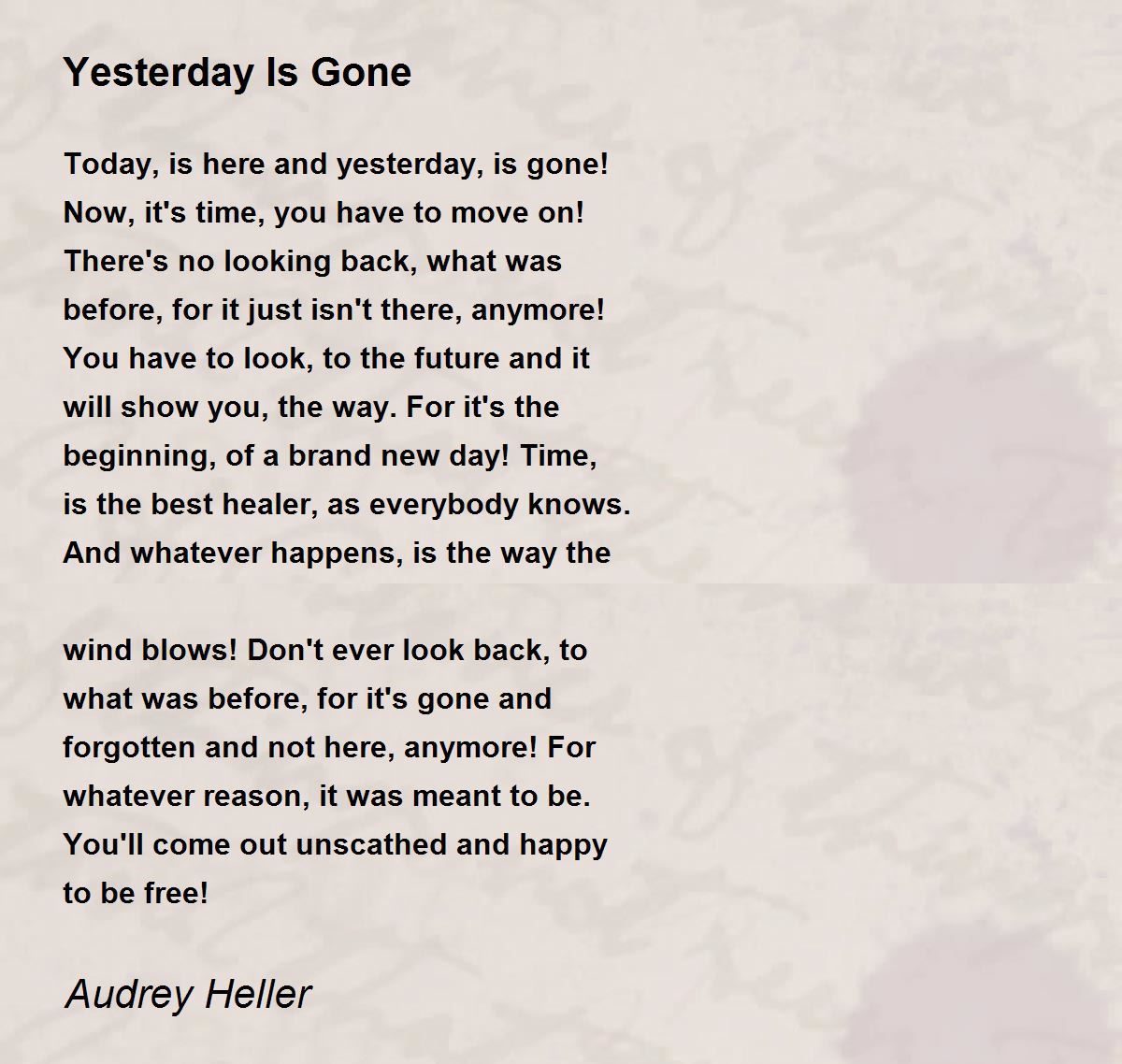 Today, is here and yesterday, is gone!