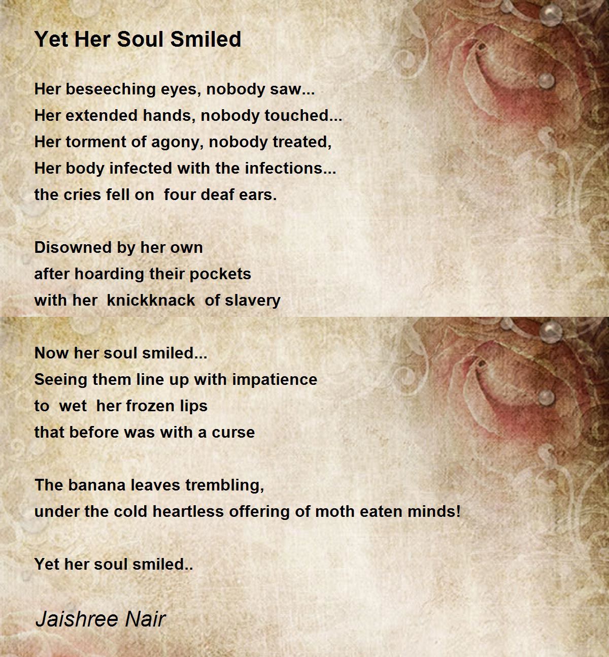 Now her soul smiled...