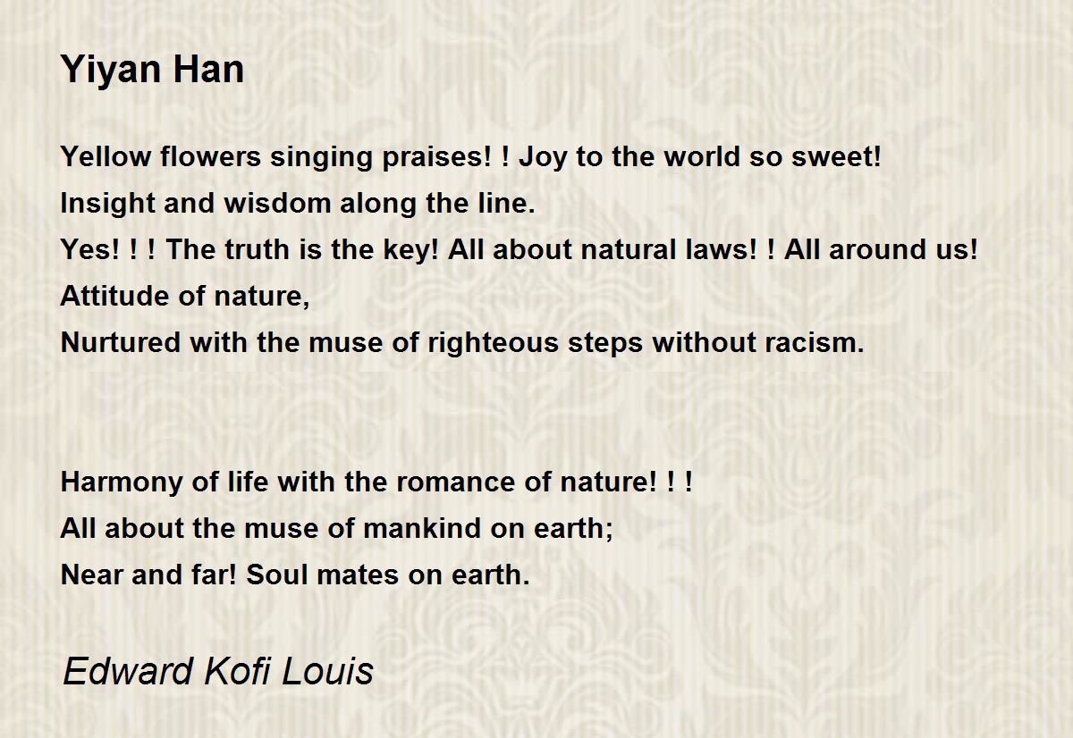 beautiful tribute to the poet Dr.Yiyan Han. Nice to read you always