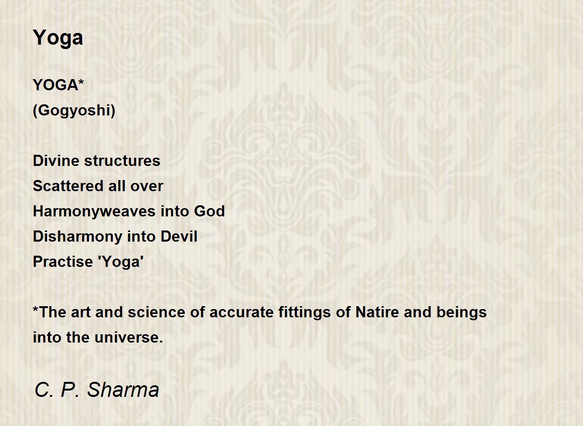 Yup Sharma ji hormony reaches god and dishormony go to devils. It's true that yoga is answer to many of physical disorders. This poem also reflects your inner self which always wishes for the good. I really enjoy reading, commenting and rating your verses as they are pleasing to my eyes. By this time I had go at 5 of your latest poems. And hope you do the same with my latest poetry. With regards...