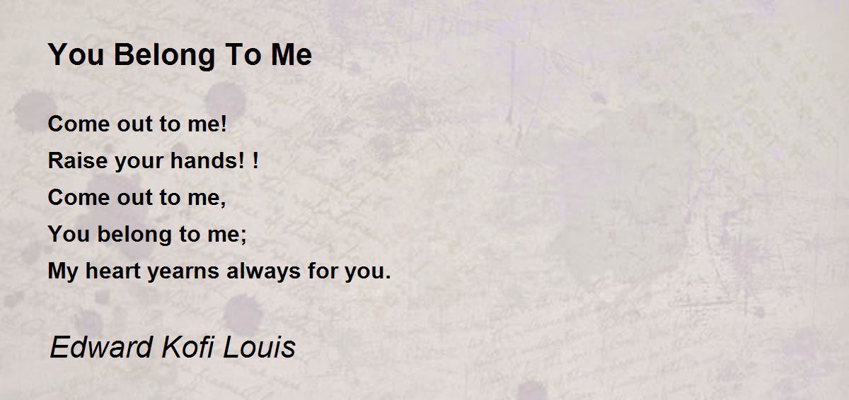 Come out to me! Raise your hands! ! Come out to me, You belong to me; My heart yearns always for you.