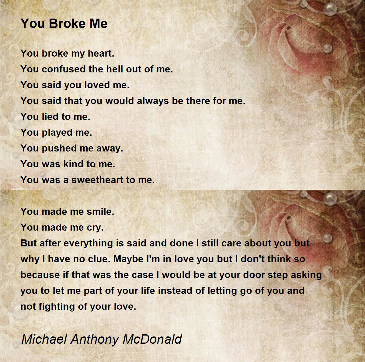 But after everything is said and done I still care about you but why I have no clue.Maybe I'm in love you but I don't think so because if that was the case I would be at your door step asking you to let me part of your life instead of letting go of you and not fighting of your love.