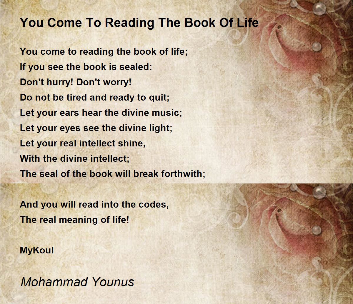 You come to reading the book of life;