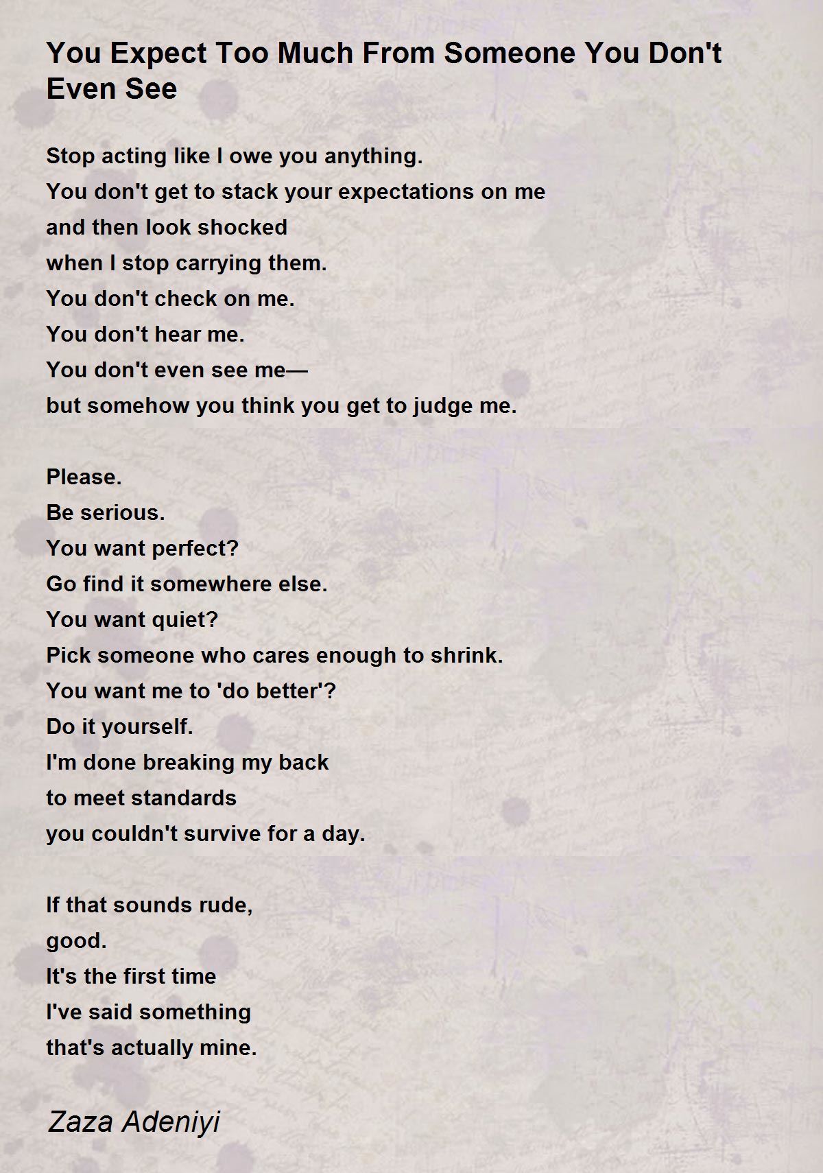 You don't get to stack your expectations on me